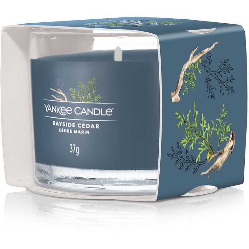 Bauside Cedar è la fragranza Yankee Candle che troverai solo nel formato Filled Votive. Piccole votive in vetro trasparente e in cera di soia, confezionate con un elegante cartoncino colorato.