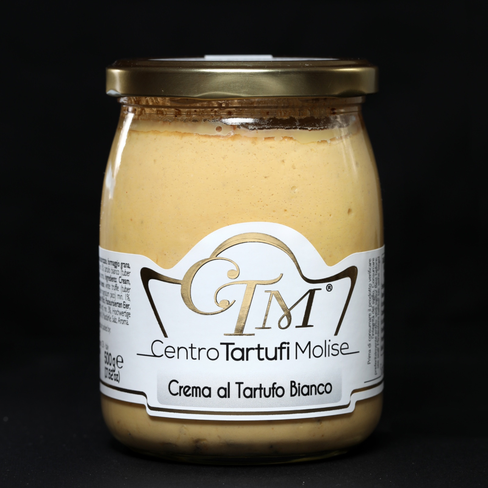 La crema al Tartufo Bianco è preparata con Tartufo Bianco e Bianchetto, è deliziosa nei primi piatti, come i risotti, e negli arrosti.