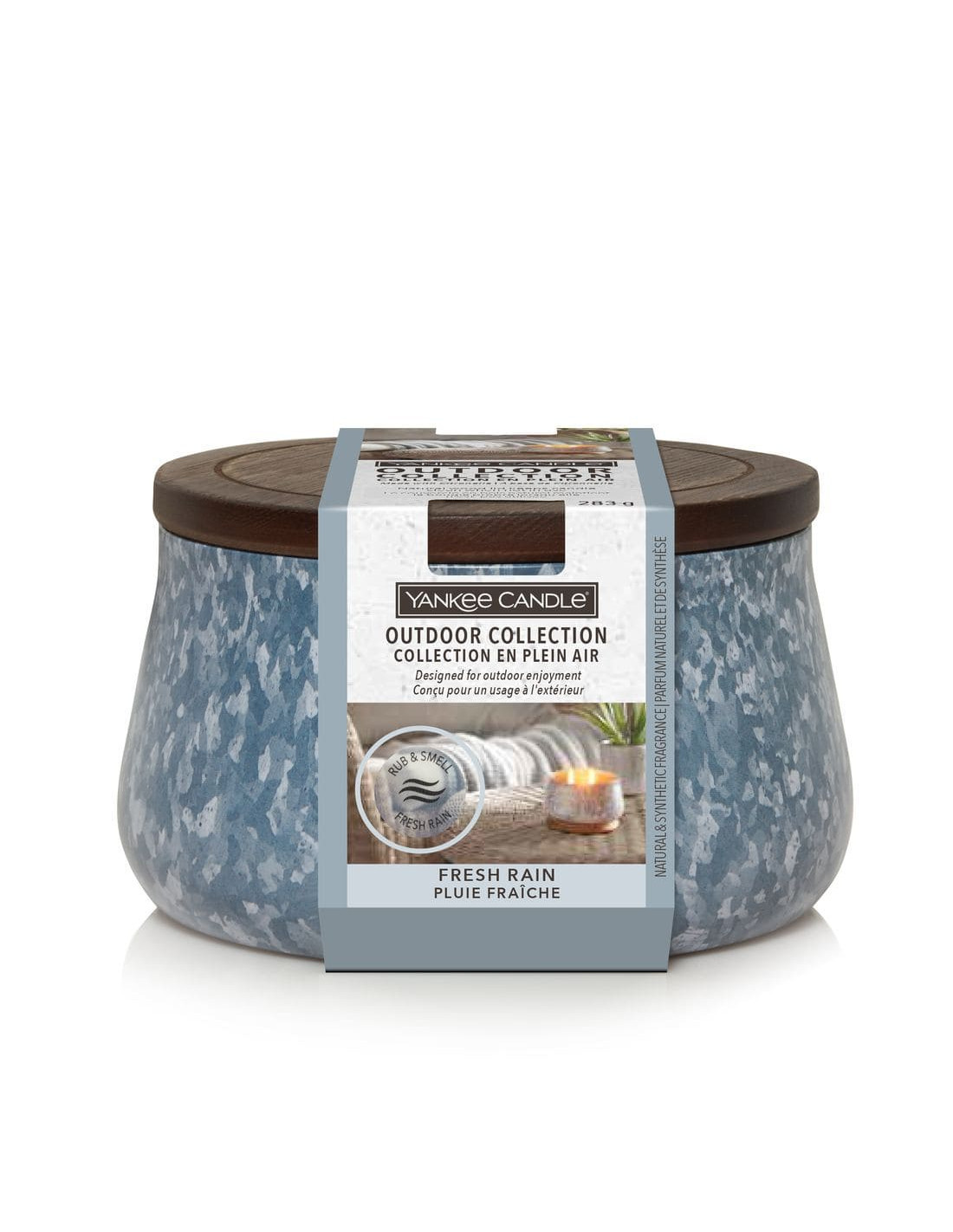Scopri le nuove candele per esterno Yankee Candle. Fresh Rain è il profumo di un frutteto in una sera d’estate