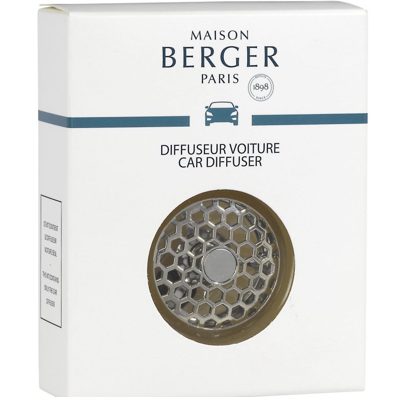 Deodorante auto con diffusore in metallo Maison Berger Paris che si aggancia alla presa d’aria della macchina. Nel retro c’è una pinza che gli consente di restare ben ancorato alla griglia. Un oggetto di design da sfoggiare nella tua auto.