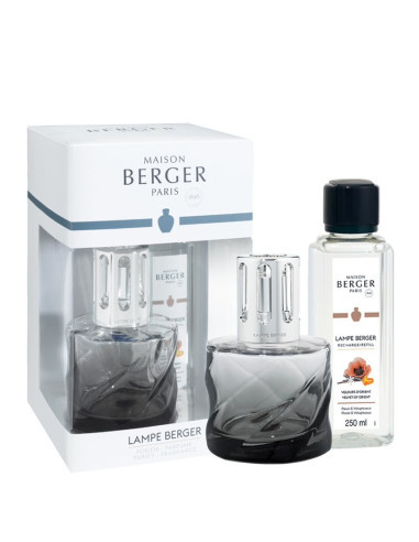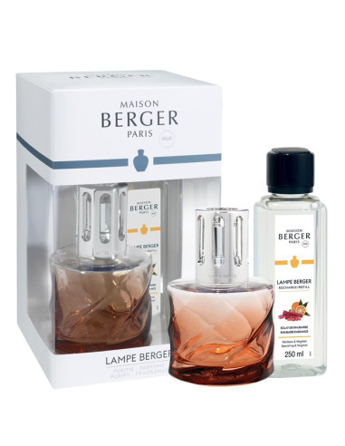 Lampada catalitica realizzata in vetro colorato lavorato a spirale.