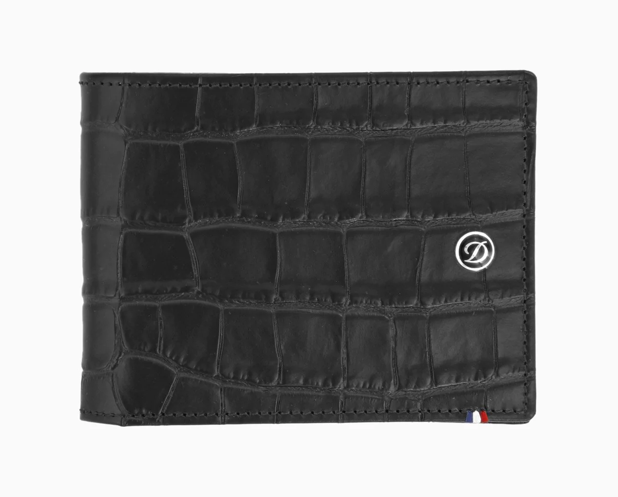 Il portafoglio da uomo classico compatto, realizzato in pelle di vacchetta groffato con motivo di coccodrillo. Le finiture in palladio e la griffe blu, bianca e rossa simbolo di S.T. Dupont rende questo accessorio davvero senza tempo.
