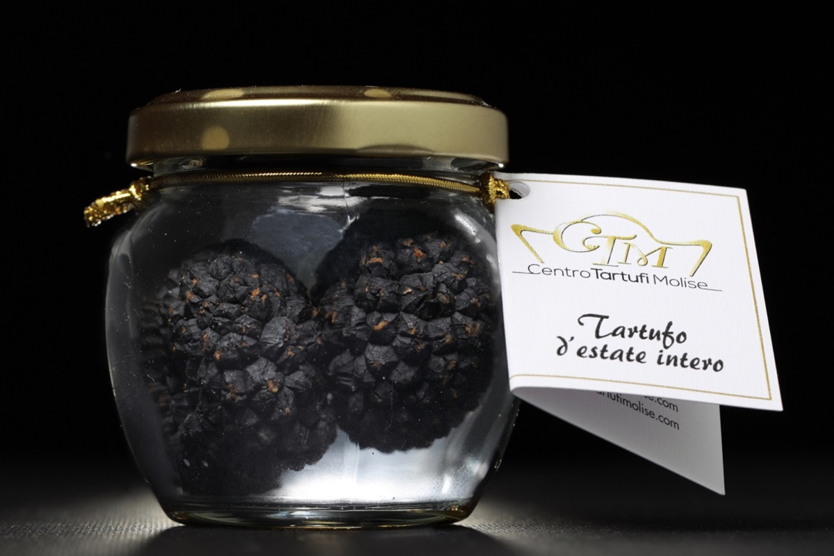 Tartufo nero intero conservato in acqua e sale, il prodotto è consigliato per accompagnare aperitivi e antipasti.